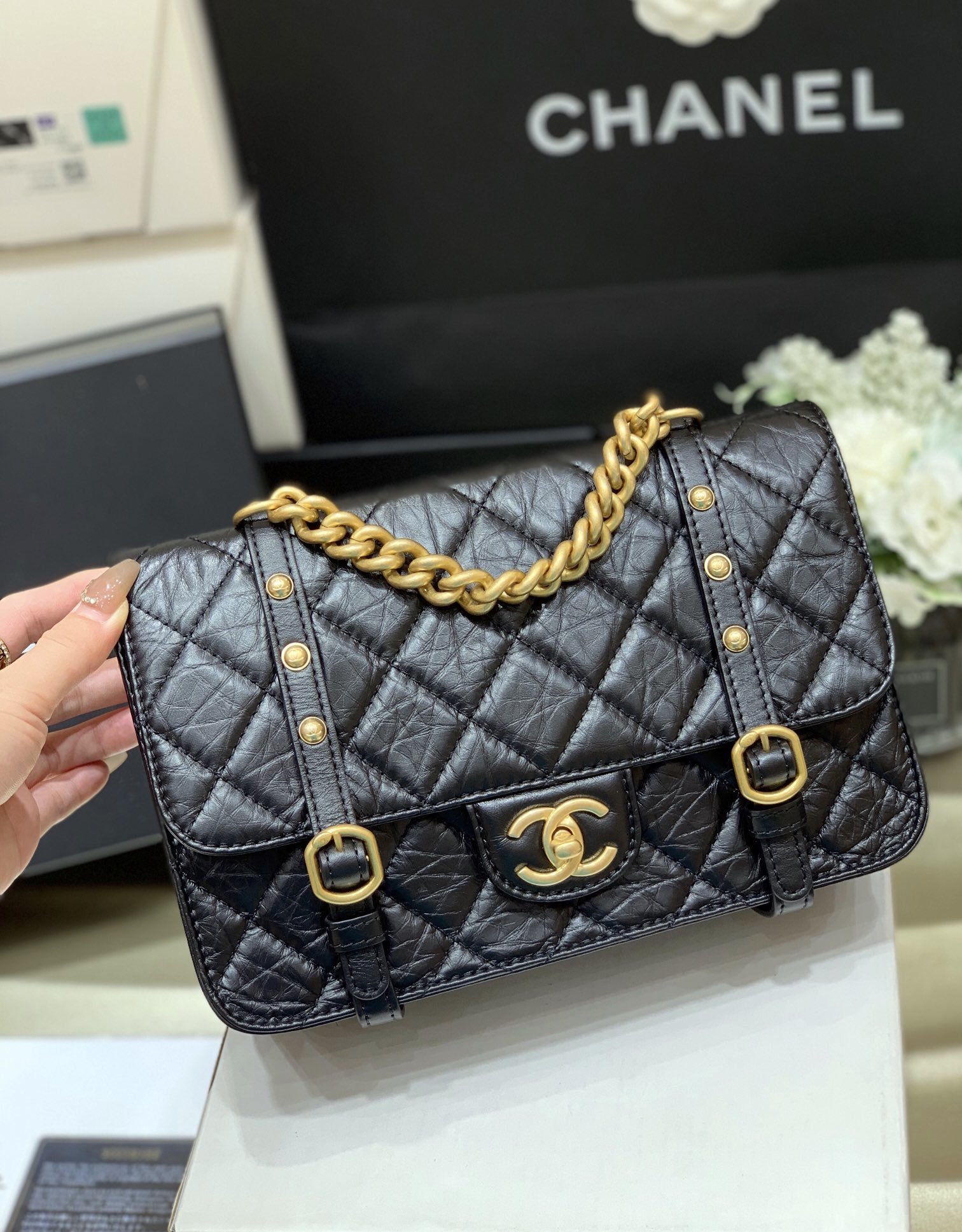Chanel Co Co Shoulder Bag Gold Chain For Women 9.8in/25cm
