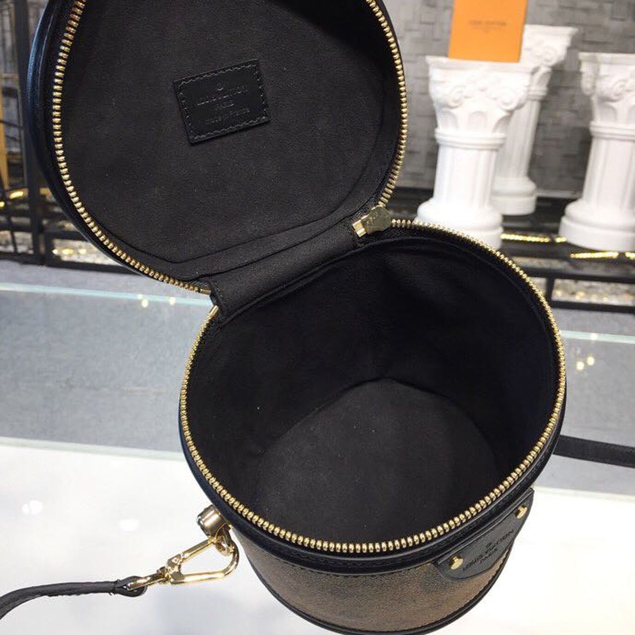 Featuring the historical shape of the LV Cannes beauty case, designer Nicolas Ghesqui��re revives a long-standing classic with the Cannes handbag. Petite in size and presented in a mix of Monogram and Monogram reverse coated canvas, the elegant piece reanimates a traditional silhouette steeped in Louis Vuitton heritage. A removable leather strap and top handle provide a range of carrying options.