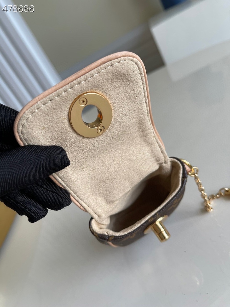 Flap top with LV engraved turn-lock closure